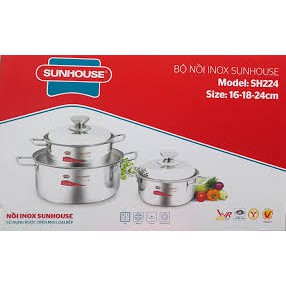 Bộ 3 nồi inox cao cấp Sunhouse SH224 [ HÀNG CHÍNH HÃNG] siêu sale