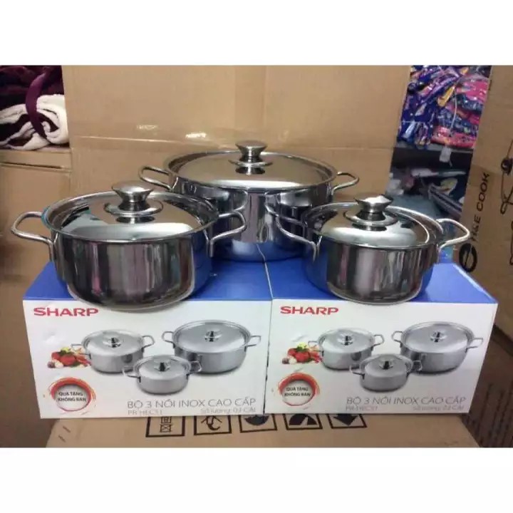 Bộ 3 nồi Inox dùng cho MỌI LOẠI BẾP - SẴN HÀNG GIAO LUÔN– Tên sản phẩm : Bộ 3 nồi Inox Sharp dùng bếp từ