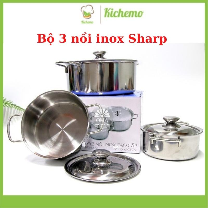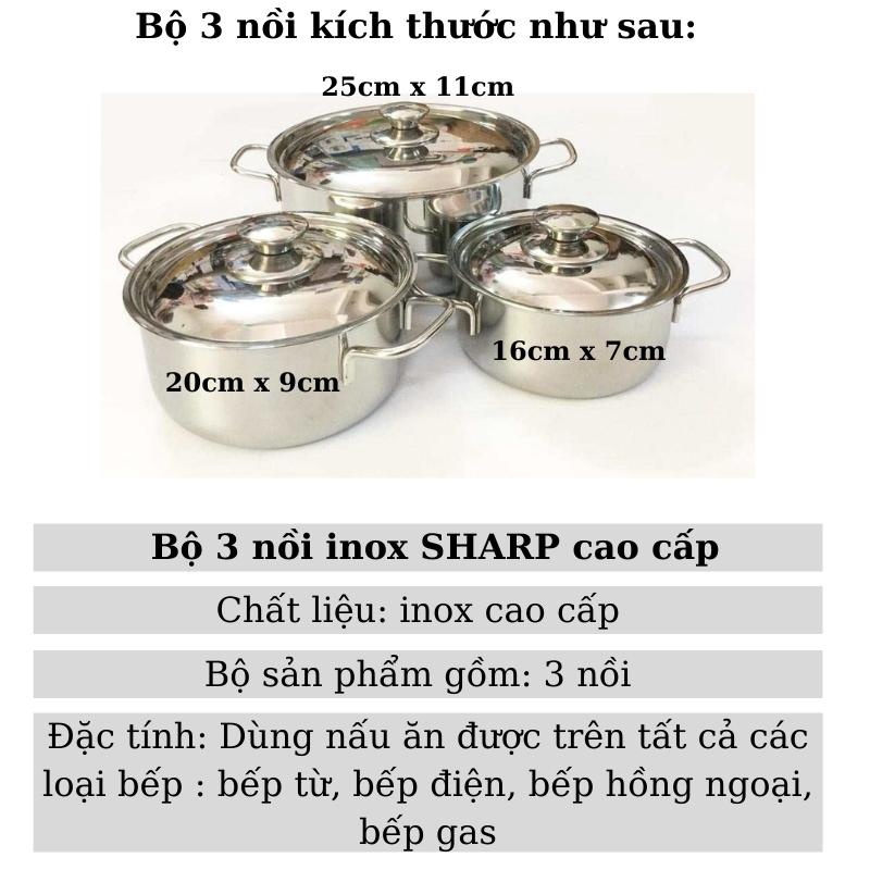 Bộ 3 Nồi Inox Đáy Từ Bộ Nồi Sharp Sử Dụng Cho Nhiều Loại Bếp Nồi Đa NăngThông tin sản phẩm: