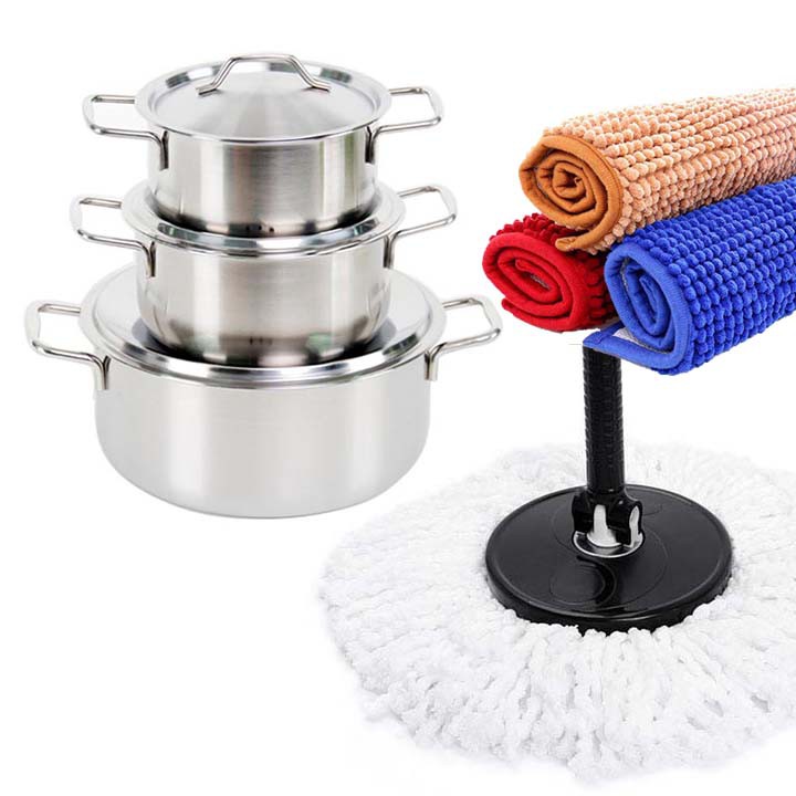 Nhà cửa & Đời sống > Dụng cụ chăm sóc nhà cửa > Cây lau nhà || Bộ 3 nồi inox Dragon tặng thảm và bông lau Omega 360 độCòn hàng