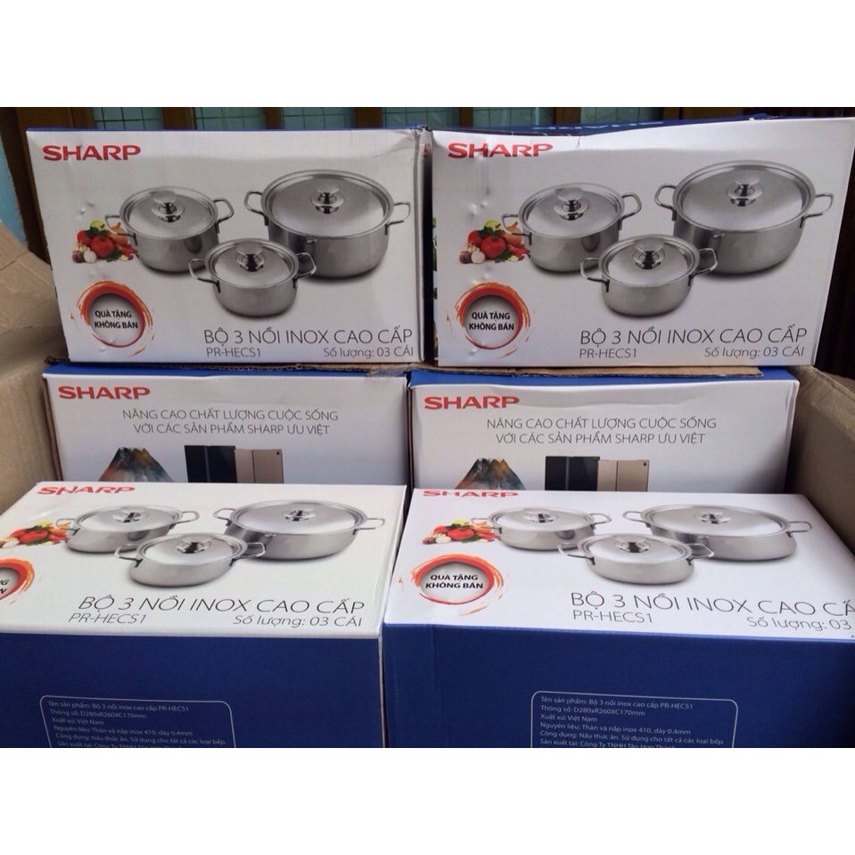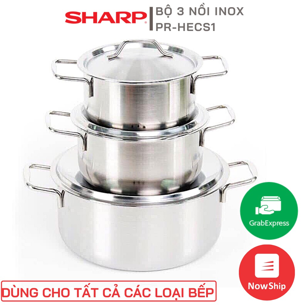 Bộ 3 nồi Inox dùng cho MỌI LOẠI BẾP - Bộ nồi inox bếp từ hàng khuyến mãi PR-HECS1 - SẴN HÀNG GIAO LUÔN- Nồi Sharp