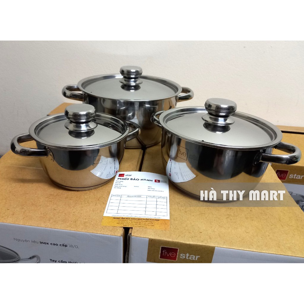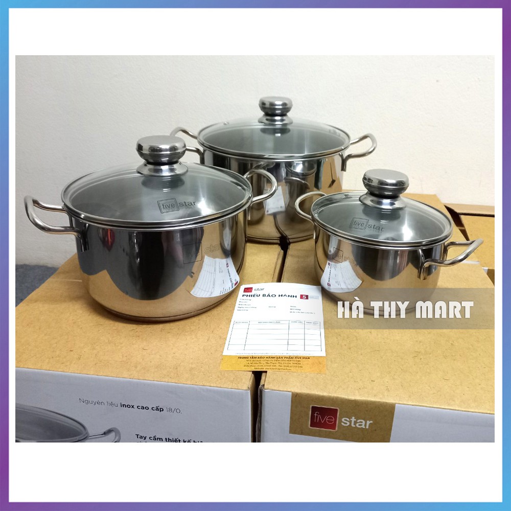 Bộ 3 nồi inox Fivestar 3 đáy bếp từ siêu dày [vung kính/vung inox]