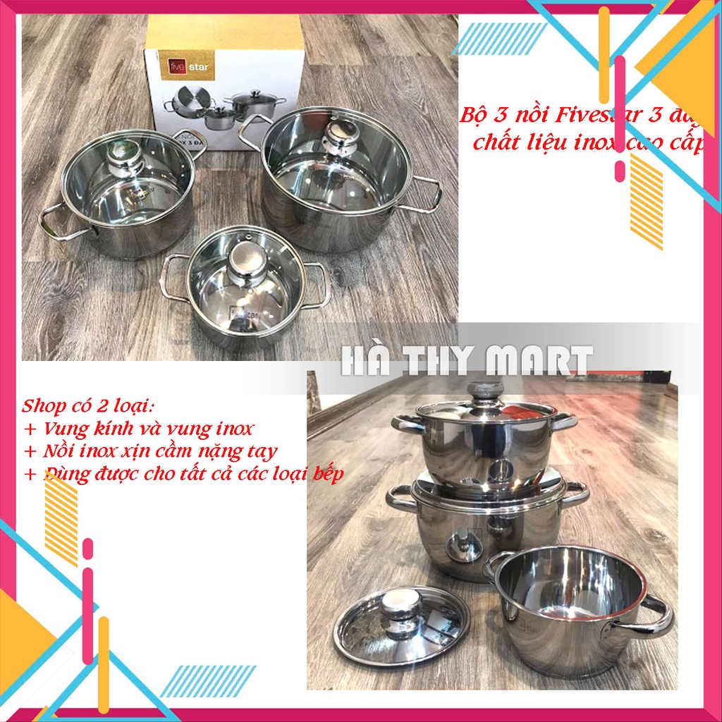 Nhà cửa & Đời sống > Dụng cụ nhà bếp > Nồi || Bộ 3 nồi inox Fivestar 3 đáy bếp từ siêu dày [vung kính/vung inox]Còn hàng