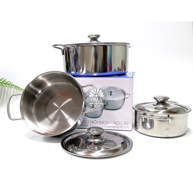 Giới thiệu Bộ 3 Nồi Inox Kích Thước 16-24cm, Bộ Nồi SHARP Cao Cấp Dùng Cho Mọi Loại Bếp Ga, Bếp Từ, Bếp Hồng Ngoại