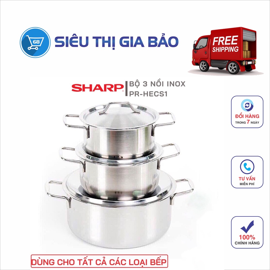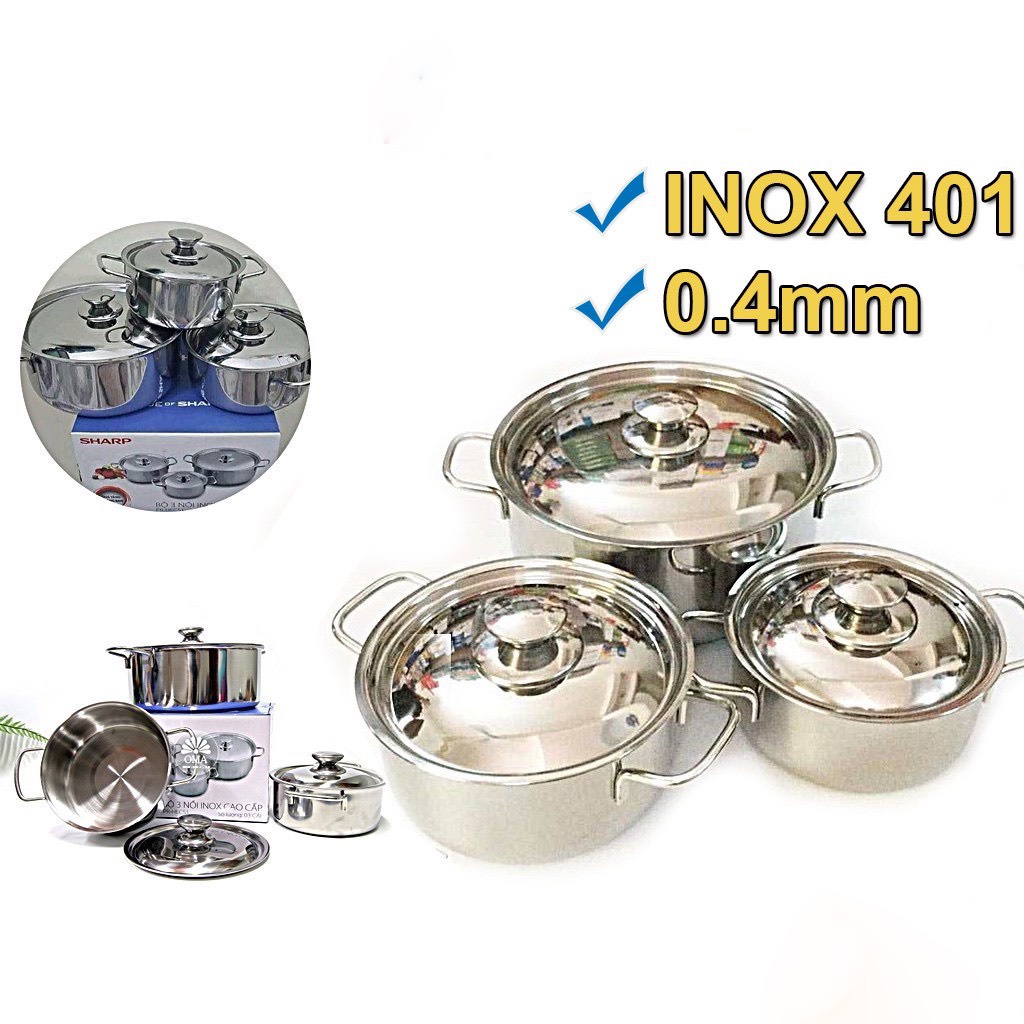 Bộ 3 nồi inox SHARP 16cm- 20cm- 24cm hàng đẹp- dùng cho mọi loại bếp