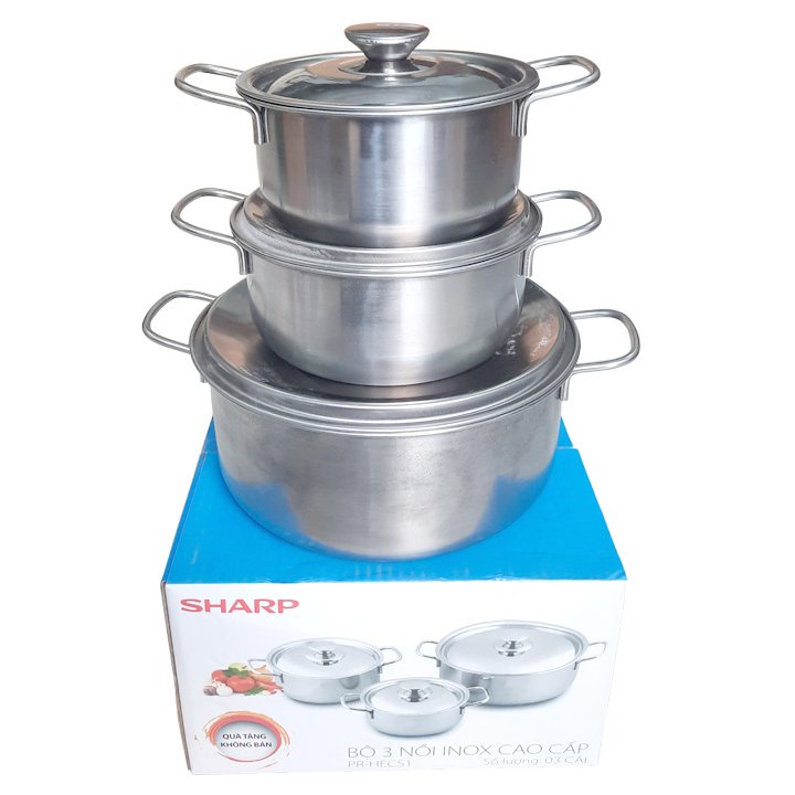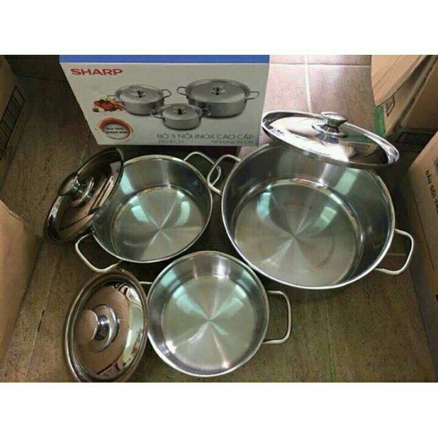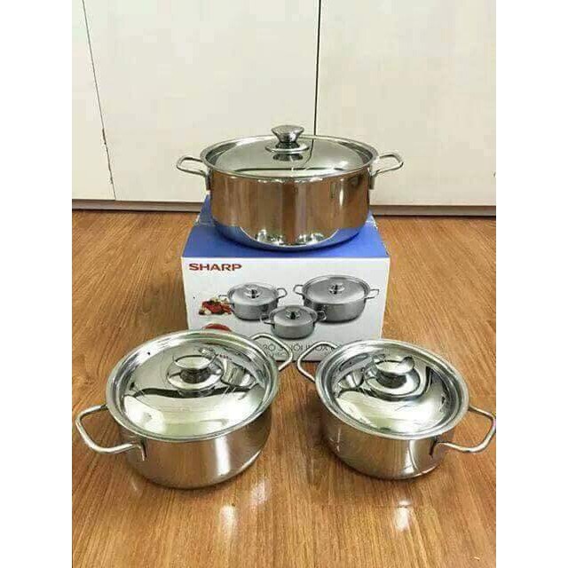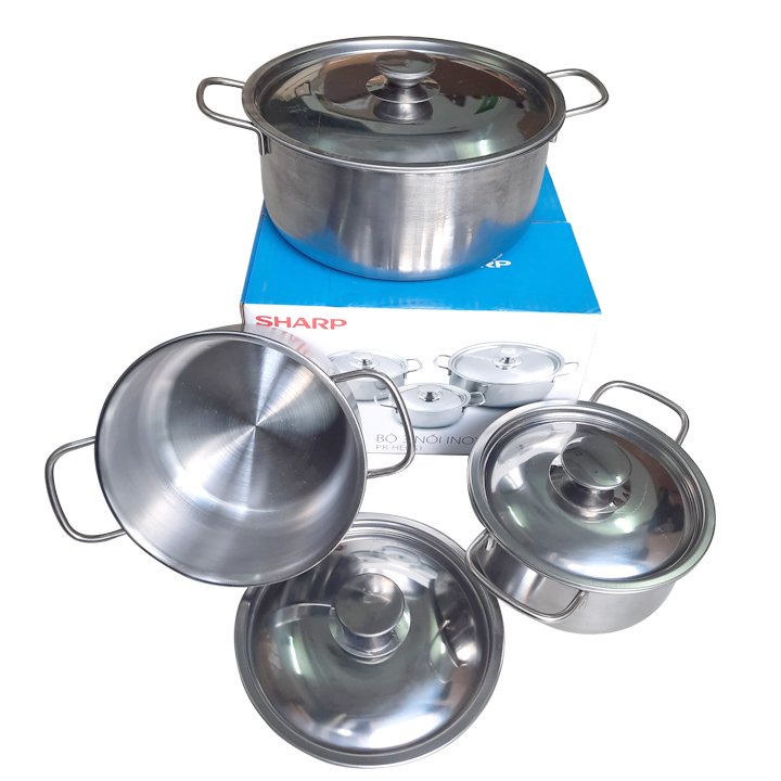 Nhà cửa & Đời sống > Dụng cụ nhà bếp > Nồi || Bộ 3 Nồi inox Sharp. Bộ 3 Nồi Inox Sharp Cho Mọi Loại Bếp, Chất Liệu Inox 410 Dày 0.4mm - Bộ Nồi Sharp - Nồi Đa NăngCòn hàng