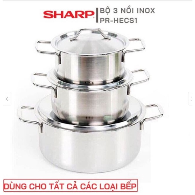 Bộ 3 nồi Inox dùng cho MỌI LOẠI BẾP - SẴN HÀNG GIAO LUÔN– Tên sản phẩm : Bộ 3 nồi Inox Sharp dùng bếp từ