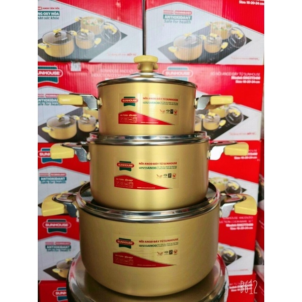 Bộ 3 Nồi Inox Sunhouse Cao Cấp Chống Dính Chống Trầy Xướt