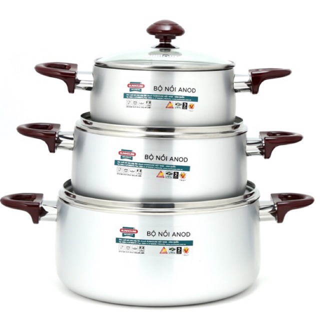 ☘️Bộ nồi Sunhouse SH8833 có ba chiếc với đường kính là 18cm, 22cm và 26cm giúp bạn nấu được nhiều món ăn khác nhau, vô cùng tiện ích.