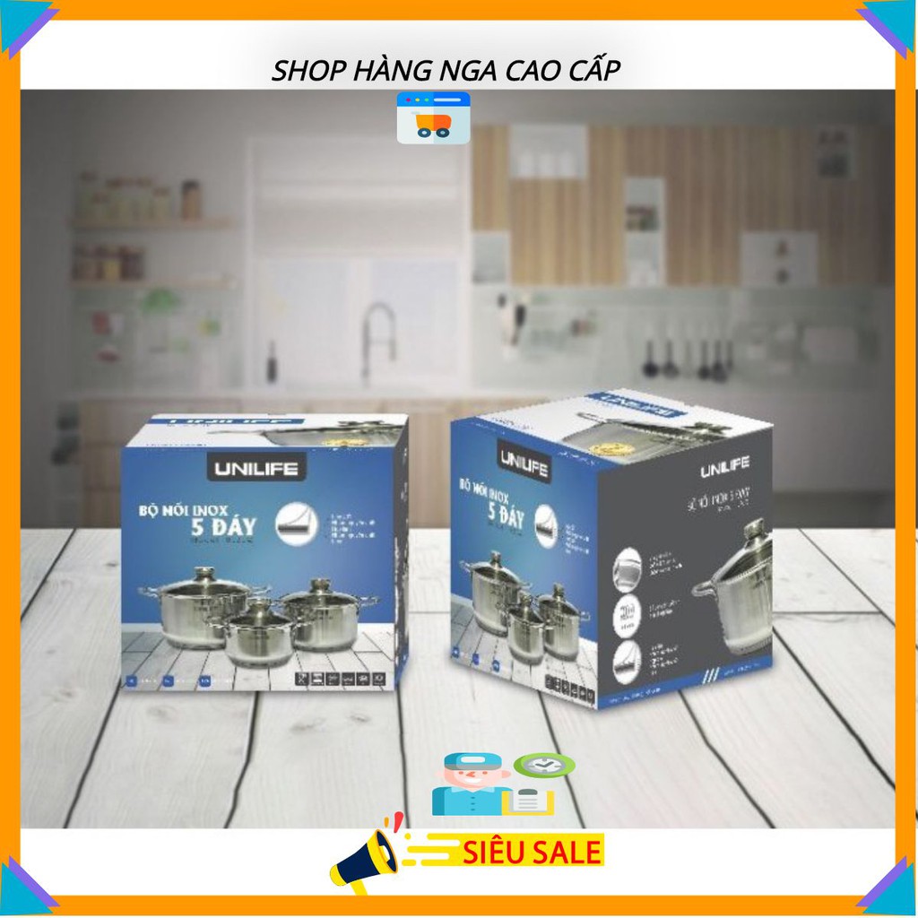 Bộ 3 nồi inox Unilife🇷🇺FREESHIP🇷🇺Bộ nồi 5 lớp