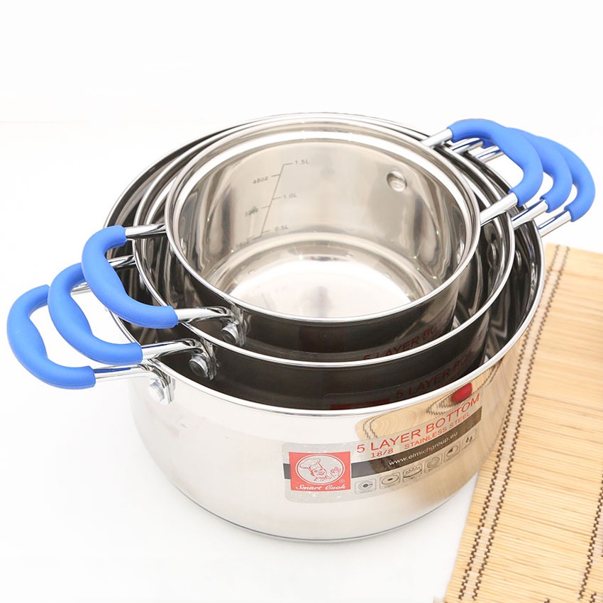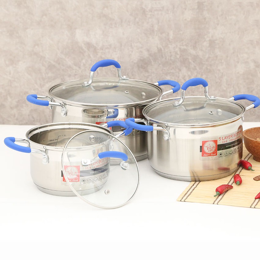 Bộ 3 Nồi Inox304 5 đáy Smartcook SM3332 (16, 20, 24 cm)