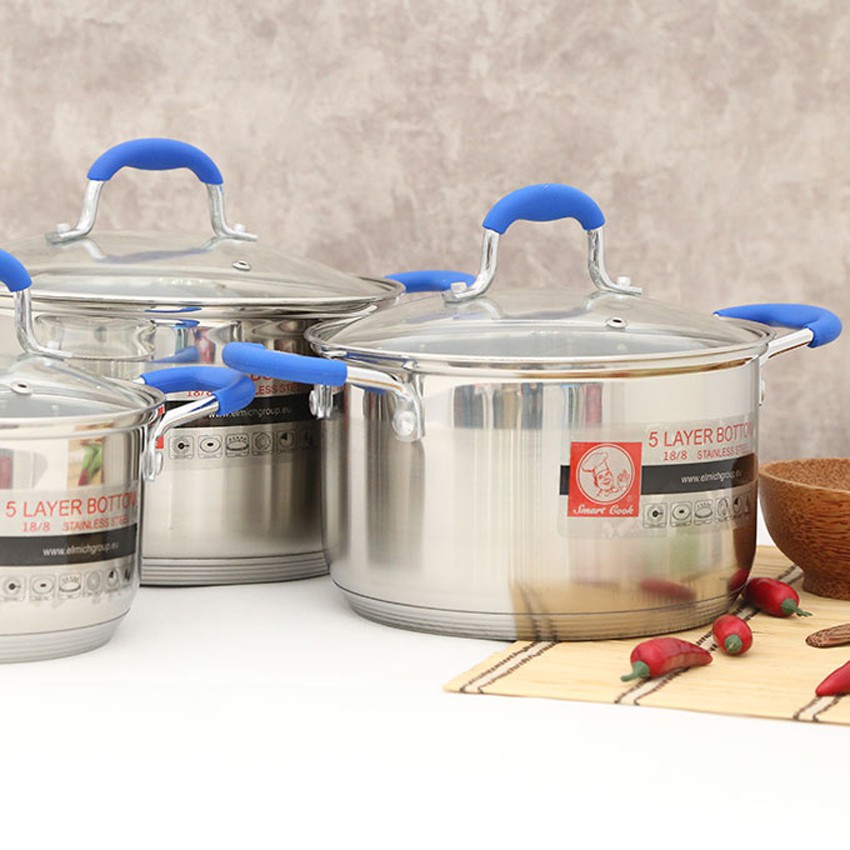 Bộ 3 Nồi Inox304 5 đáy Smartcook SM3332 (16, 20, 24 cm)- Thương hiệu Smart Cook - là 1 thương hiệu của tập Đoàn Elmich – Cộng hòa Séc