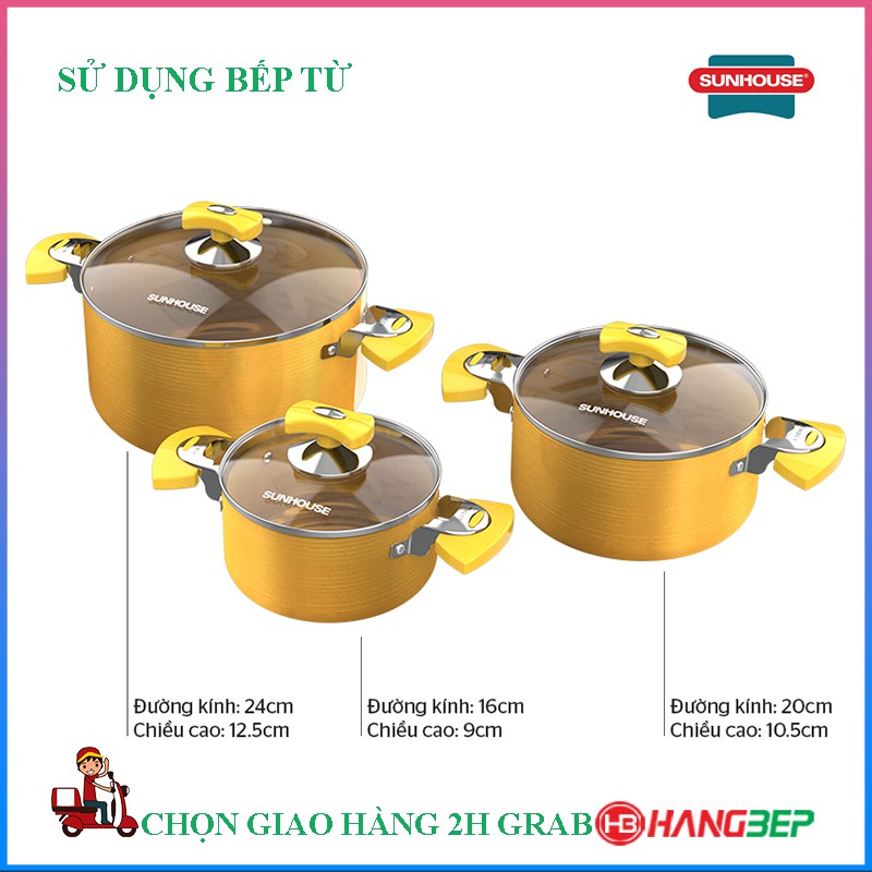 Nhà cửa & Đời sống > Dụng cụ nhà bếp > Nồi || Bộ 3 nồi nhôm Anod đáy từ Sunhouse SHG7734MCòn hàng