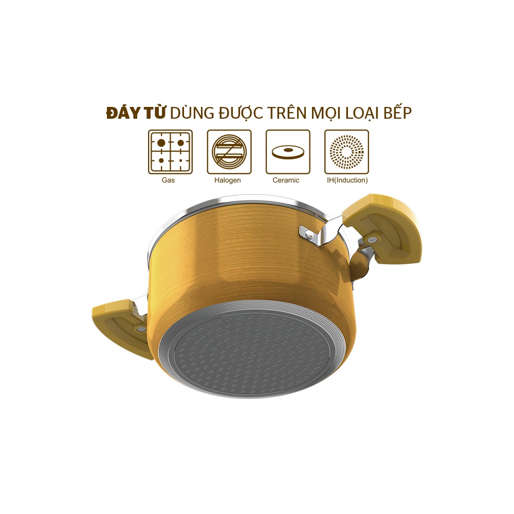 ✔ Đáy từ sử dụng trên mọi loại bếp: BẾP TỪ, bếp gas, bếp hồng ngoại,...
