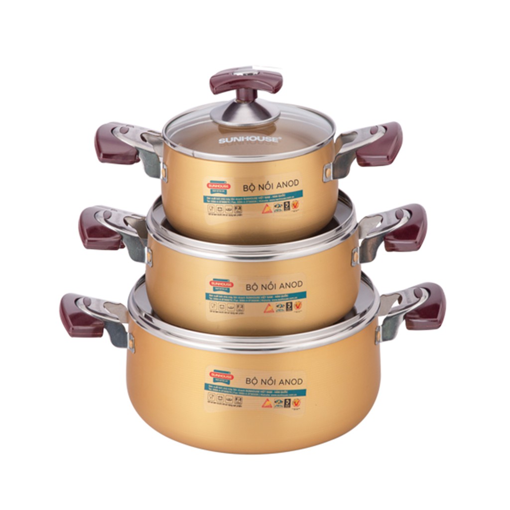 Nhà cửa & Đời sống > Dụng cụ nhà bếp > Nồi || Bộ 3 nồi nhôm Anod Sunhouse SH6634 ( 16/20/24cm)Còn hàng