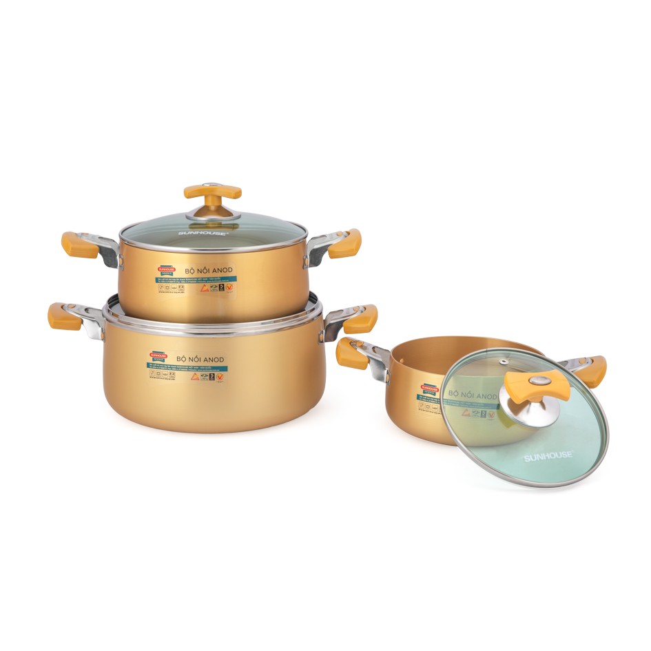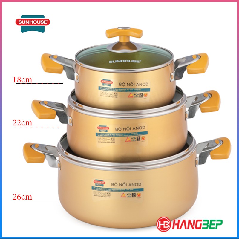 Nhà cửa & Đời sống > Dụng cụ nhà bếp > Nồi || Bộ 3 nồi nhôm Anod Sunhouse SH8834 (18cm/22cm/26cm)Còn hàng