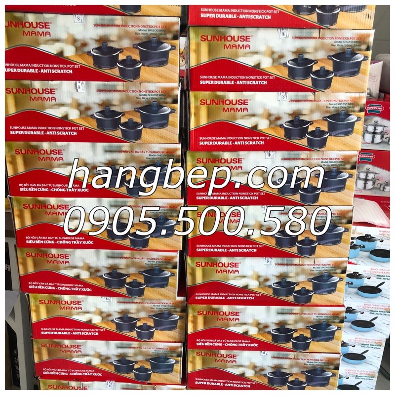 Shop hangbep.com là đại lý chính thức chuyên cung cấp sỉ, lẻ, dự án gia dụng chính hãng ( có đầy đủ chứng từ, hóa đơn VAT..). Mọi chi tiết Quý khách vui lòng inbox Zalo/Whatsapp : 0906.200.903/0905.500.580 để có thông tin chi tiết.Đặc điểm nổi bật của Bộ 3 nồi vân đá đáy từ Sunhouse SHG2003MMA