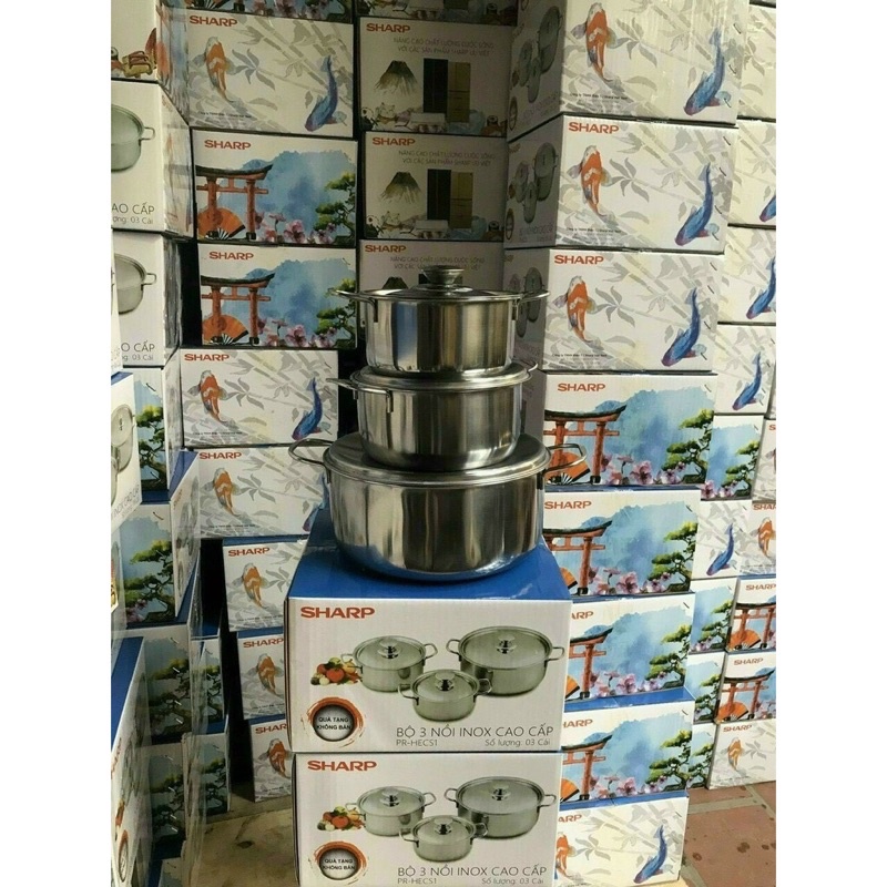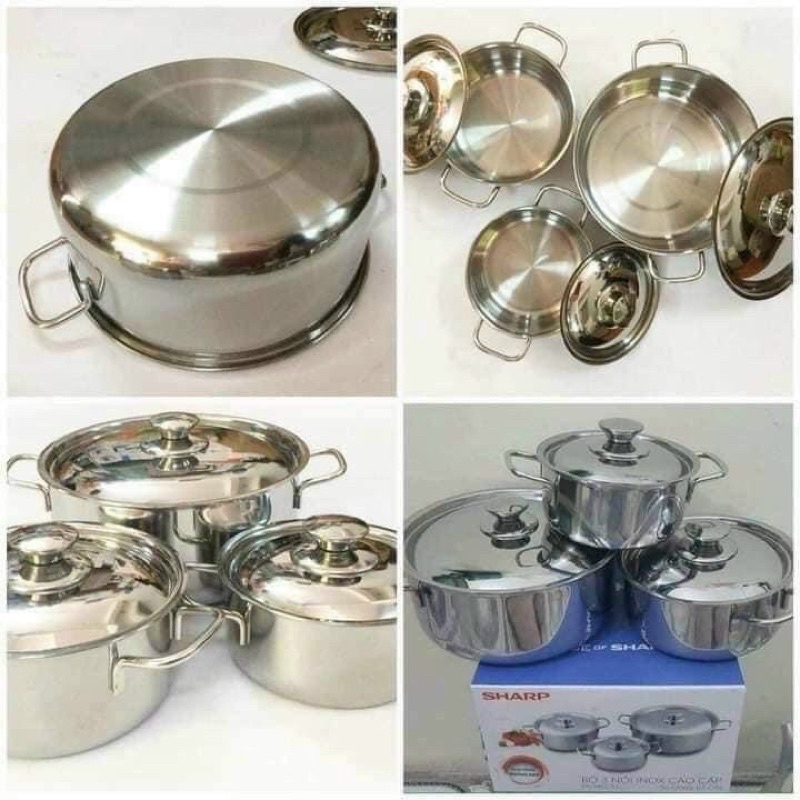 Bộ 3 Nồi Sharp Inox 304 Cao Cấp Dùng Được Cho Mọi Loại Bếp