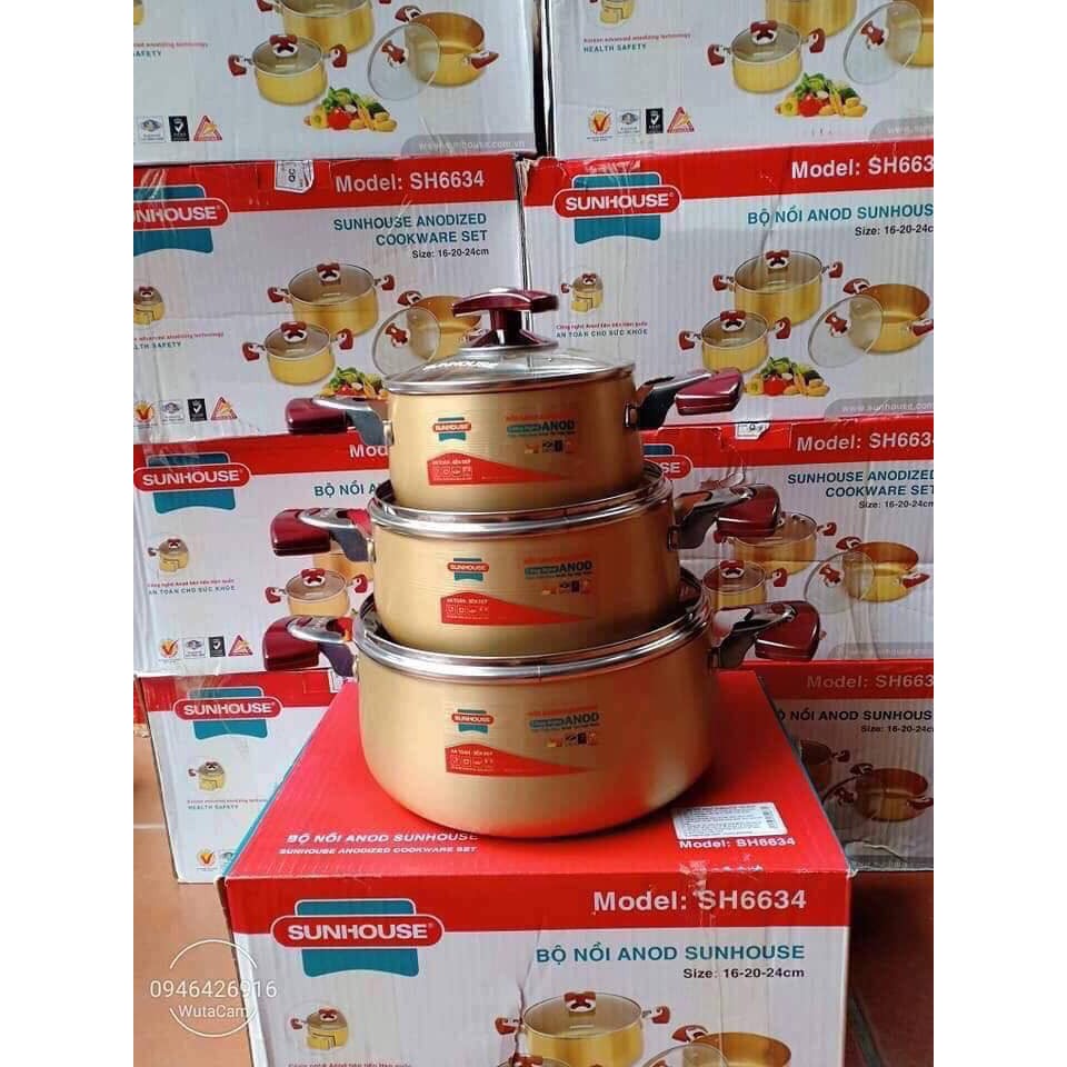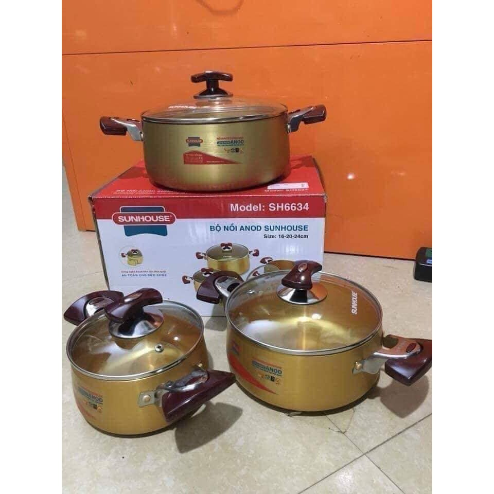 Bộ 3 nồi Sunhouse 6634 .. đẹp long lanh. chất lượng đảm bảo