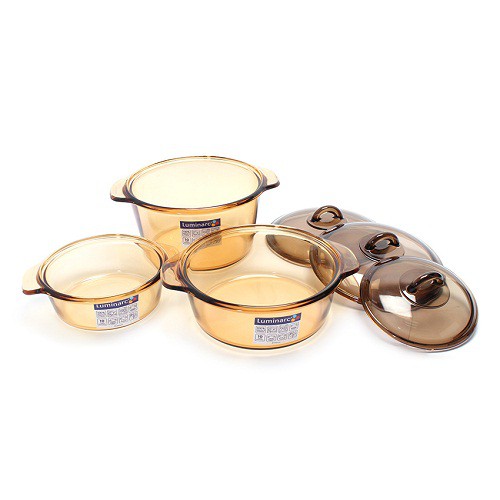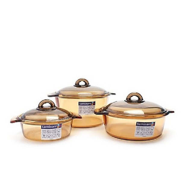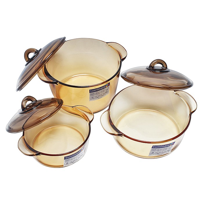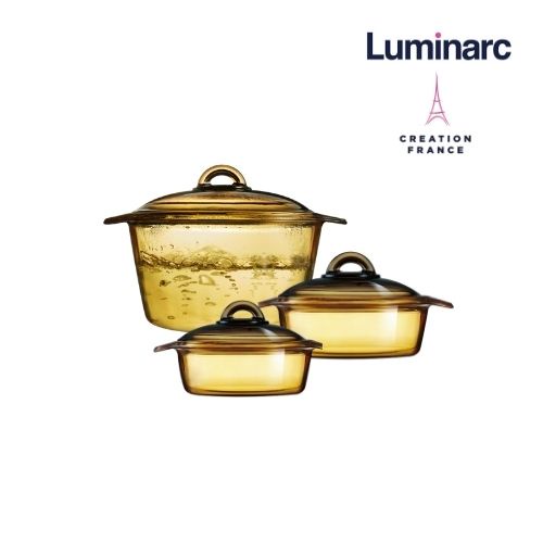Bộ 3 nồi thủy tinh cao cấp Luminarc Vitro Blooming Amberline 1L+2L+3L NB3123- Dung tích:1, 2 & 3 Lít