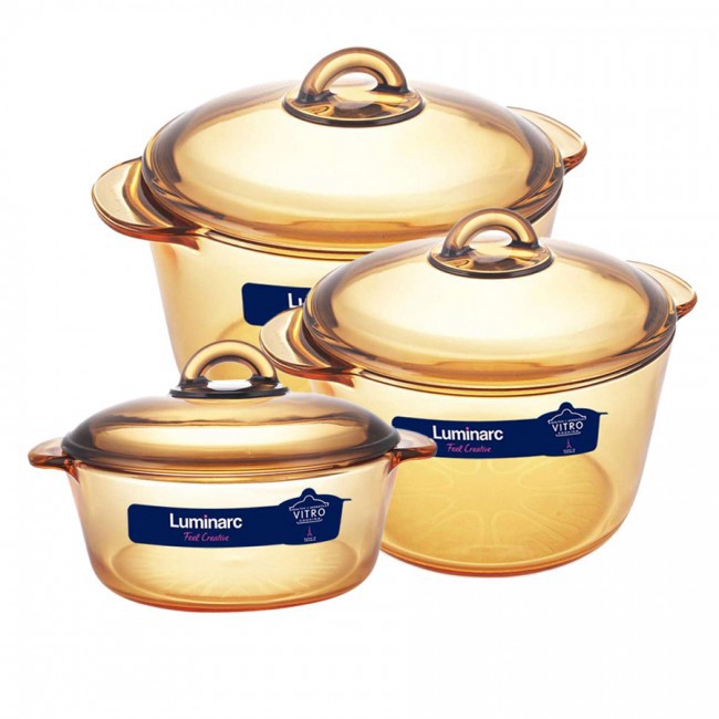 Bộ 3 Nồi Thủy Tinh Luminarc Vitro Amberline Granite 2L-3L-5L