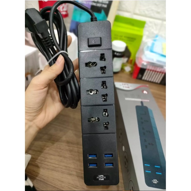 Thiết Bị Điện Gia Dụng > Mạch điện & Phụ tùng > Ổ cắm điện & Dây nối || 3 Ổ + 4USB 3.1A Ổ cắm điện thông minh cao cấp T08, dây dài 2m, 4 USB 3 phích cắm, công suất 2500W chống giật, lõi đồngCòn hàng