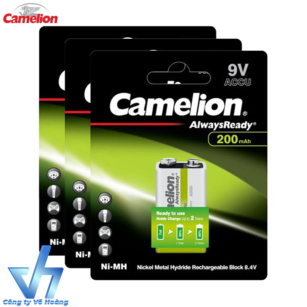 Bộ 3 pin sạc vuông Camelion AlwaysReady 9V (Trắng)