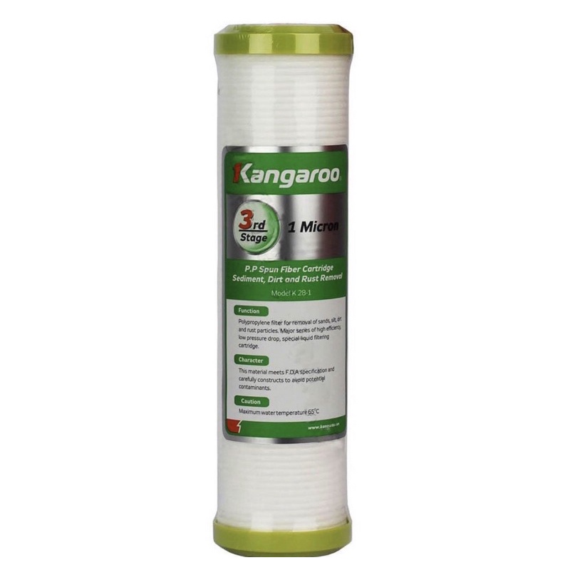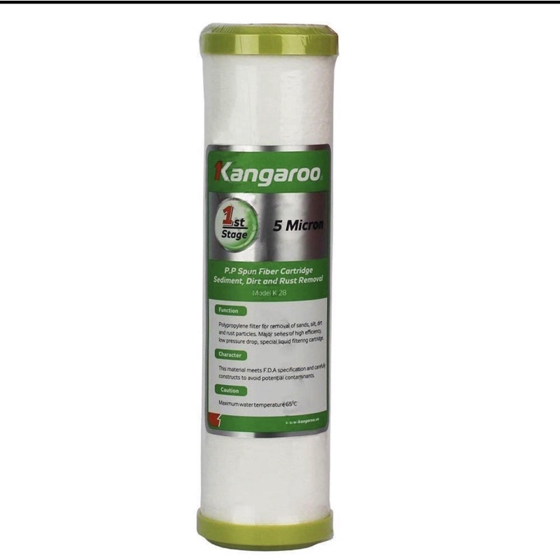 Tất cả đều là hàng chính hãng, check code đầy đủ.1. Lõi lọc nước Kangaroo số 1.1 Sợi PP tạo khe hở 5 Micron,- Nguyên liệu: Sợi PP có khe lọc 5 micron