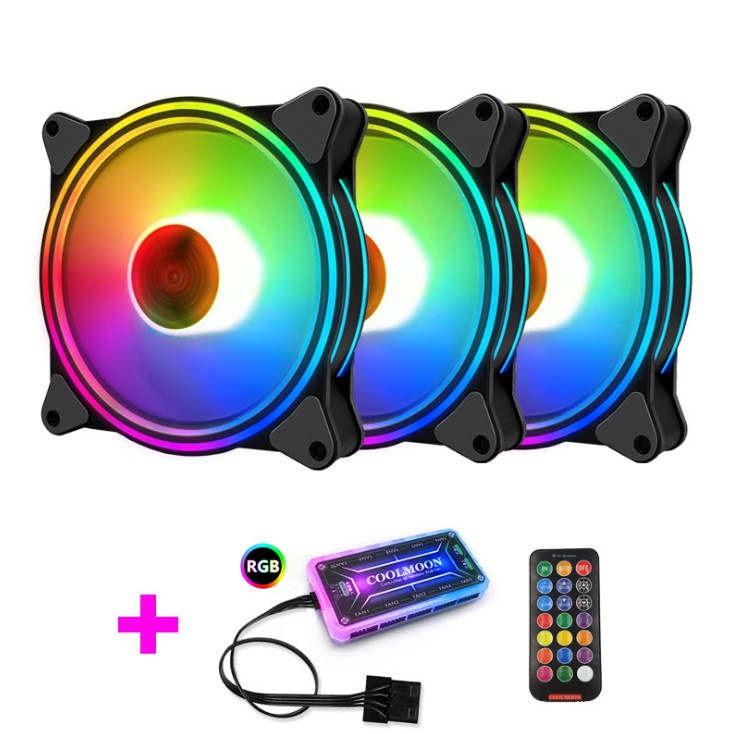 Bộ 3 Quạt Tản Nhiệt, Fan Case Coolmoon M1 Led RGB 16 Triệu Màu, 366 Hiệu Ứng - Kèm Hub + Remote