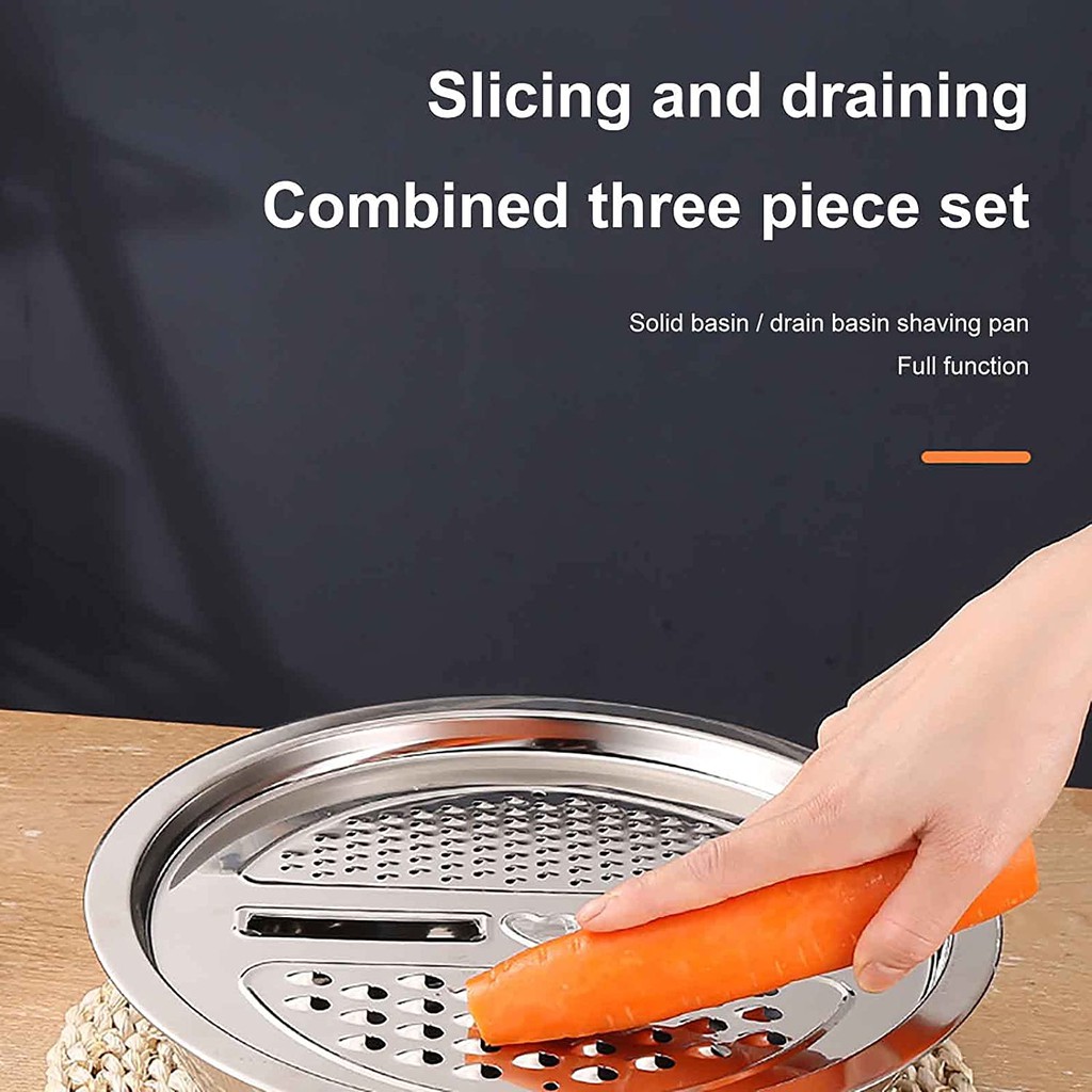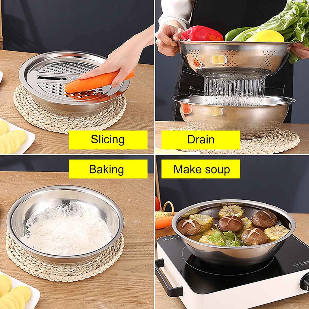 Nhà cửa & Đời sống > Dụng cụ nhà bếp > Bàn nạo, dụng cụ bào, cắt || Bộ 3 rổ kèm nạo inox không gỉ đa chức năng - tiện ích nhà bếpCòn hàng