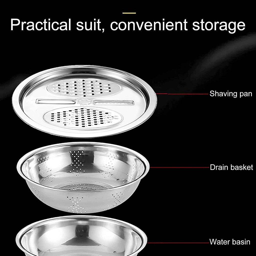 [Đa chức năng] Máy bào bằng thép không gỉ, dao thái, dao cắt hoa, đĩa thái đa năng / bồn rửa / nồi đặc[Được sử dụng rộng rãi] Nồi đơn tiện lợi hơn, dùng để thái và thái, dùng làm trái cây, xả nước, dùng làm nồi, rửa rau củ quả.