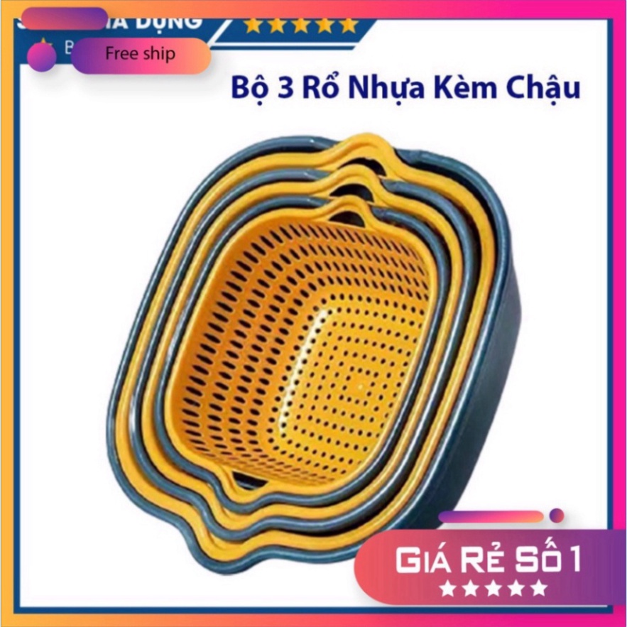 Nhà cửa & Đời sống > Dụng cụ chăm sóc nhà cửa > Chậu, xô & gáo nước || Bộ 3 Rổ Nhựa Kèm Chậu Chất Liệu Nhựa ABS Cao Cấp, Thiết Kế Tai Cầm Và Tai Rót Nước Siêu Tiện DụngCòn hàng