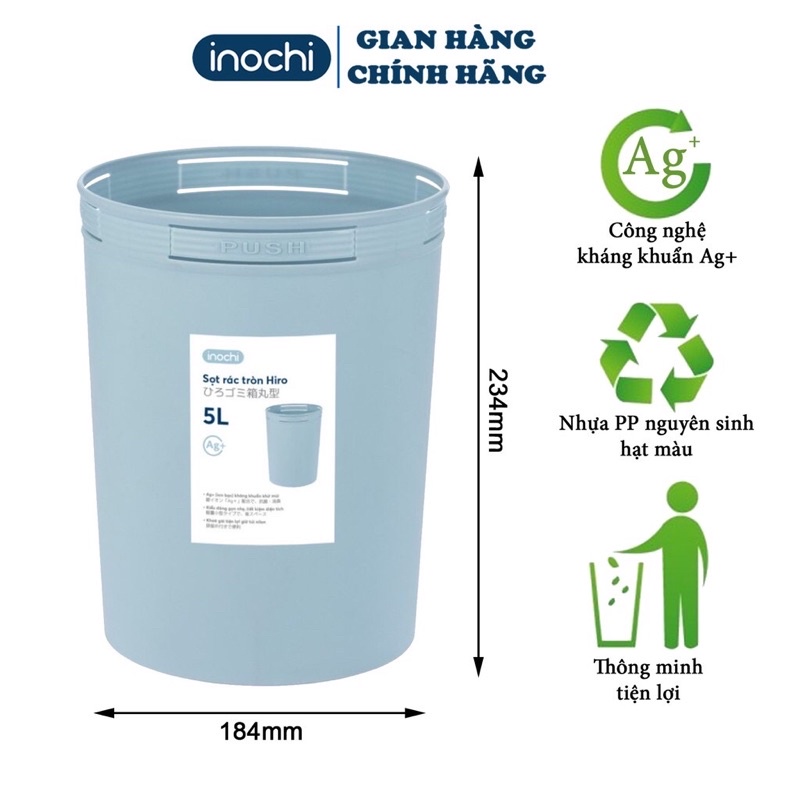 🔹Tên sản phẩm: Sọt/ thùng rác nhưa tròn Hiro INOCHI cho gia đình văn phòng🔹Thể tích: 5L, 10L, 15L