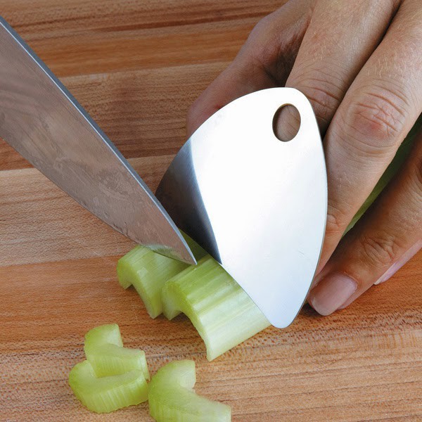 - Chỉ cần một chút bất cẩn là các bà nội trợ đã có thể bị đứt tay khi cắt thái thực phẩm. Vì thế, bạn cần đến một dụng cụ hỗ trợ để thao tác chuẩn bị nấu nướng trở nên nhanh chóng và an toàn hơn. Tấm chắn mini nhỏ gọn này chính là giải pháp hiệu quả dành cho bạn.- Sản phẩm có kích thước 6.2 x 6 cm, được làm từ thép không gỉ nên rất bền và sáng bóng. Thiết kế này gồm một khoen nhỏ để bạn đeo vào ngón tay giữa, còn phần tấm chắn phía trước sẽ che kín 4 ngón tay và bảo vệ chúng trong quá trình bạn thao tác.Như vậy khâu sơ chế thực phẩm trước khi nấu sẽ nhanh chóng và an toàn hơn rất nhiều.