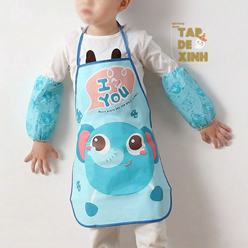 Giới thiệu (3 tặng 1) Bộ Tạp dề và bao tay học vẽ, nấu ăn cho trẻ em 3-6t , chống nước, hoa văn ngộ nghĩnh
