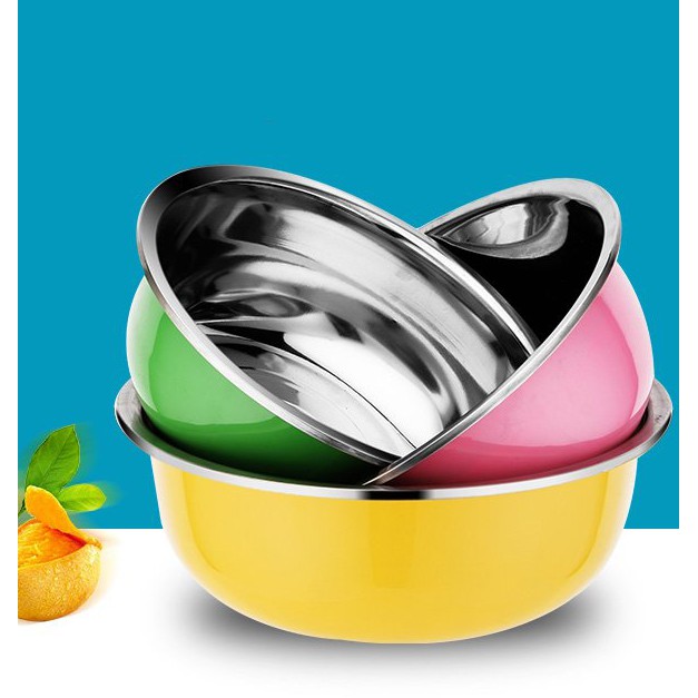 Bộ 3 Thau Inox 3 Màu Size 22-24-26CM + TẶNG KHĂN LAU- Có thể được sử dụng như một loại rổ bồn rửa chén, cũng như bát và bát ăn mì, đơn giản và thiết thực.