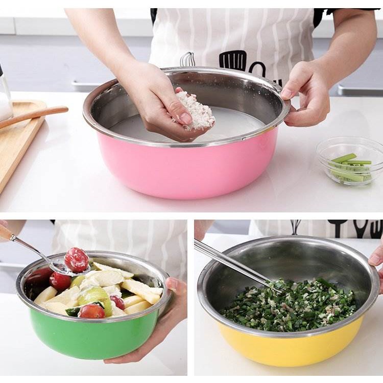 [Tặng Khăn Lau] Bộ 3 Thau Inox 3 Màu Size 22-26CM- Có thể được sử dụng như một loại rổ bồn rửa chén, cũng như bát và bát ăn mì, đơn giản và thiết thực.