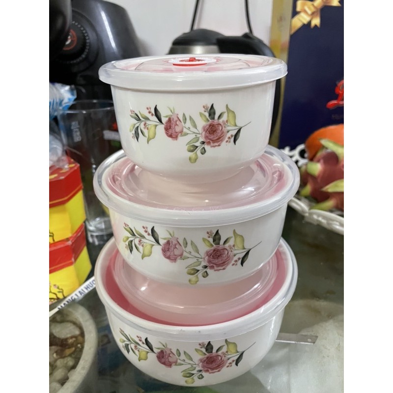 Bộ set 03 bát sứ lạnh không tai mẫu hoa cao cấp, với nắp đậy kín cho bạn bảo quản thực phẩm một cách dễ dàng, có thể dùng trong lò vi sóng và tủ lạnh.- Sử dụng trong lò vi sóng và sử dụng như bát bình thường.