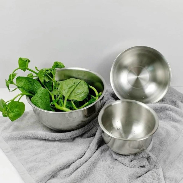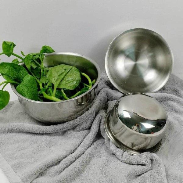 Thố inox rất dày, sáng bóng lại thiết kế thành cao nữa. KT từng thố 16cm - 20cm - 24cm.