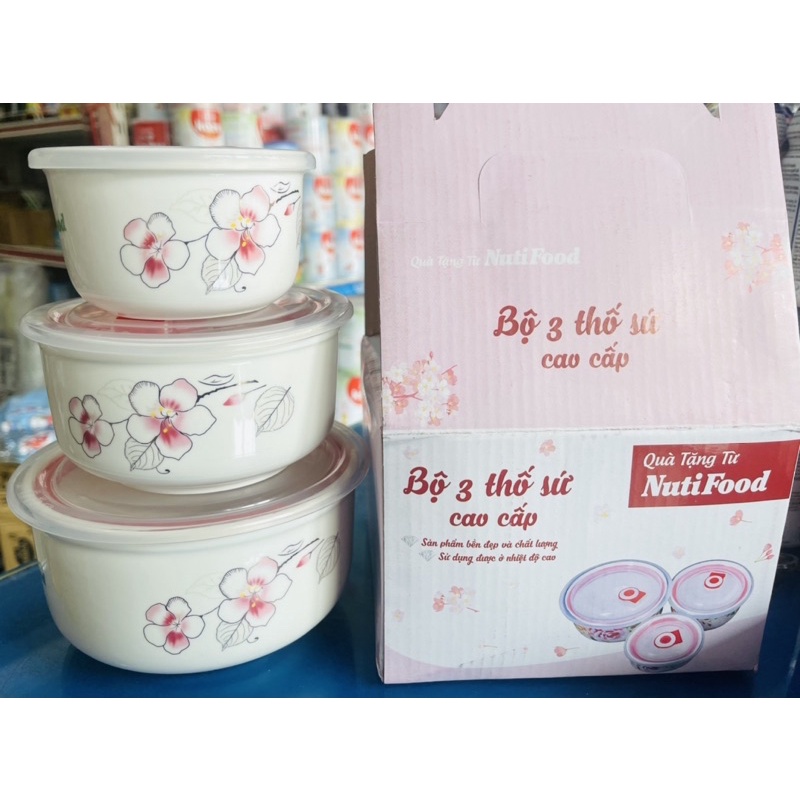 Bộ 3 thố sứ hút chân không có nắp - Bộ ba bát hút chân không có nắp