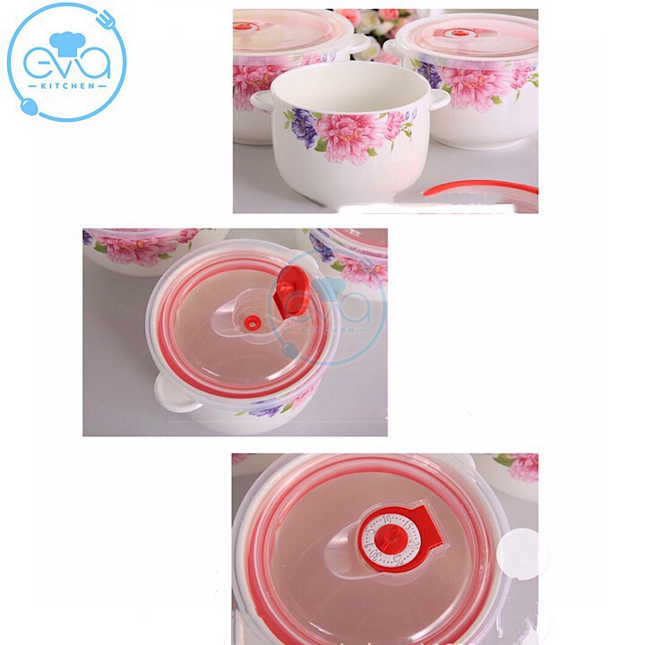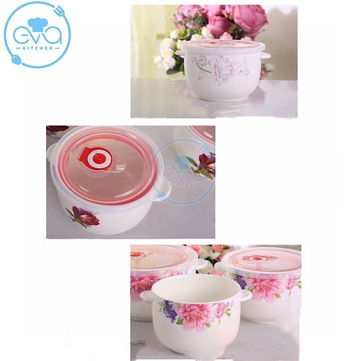 *** Điểm nổi bật Bộ 3 Thố Sứ bát sứ có quai cầm để được lò vi song nắp hút chân không