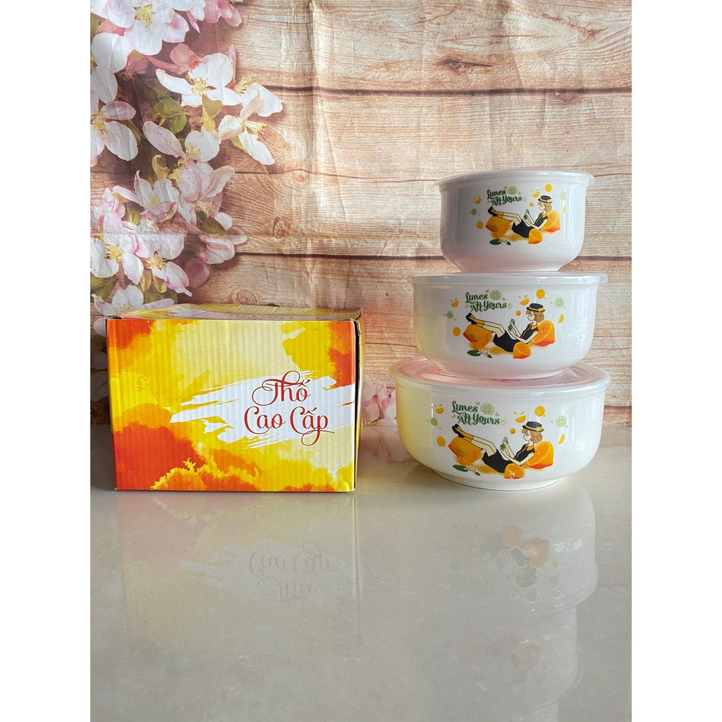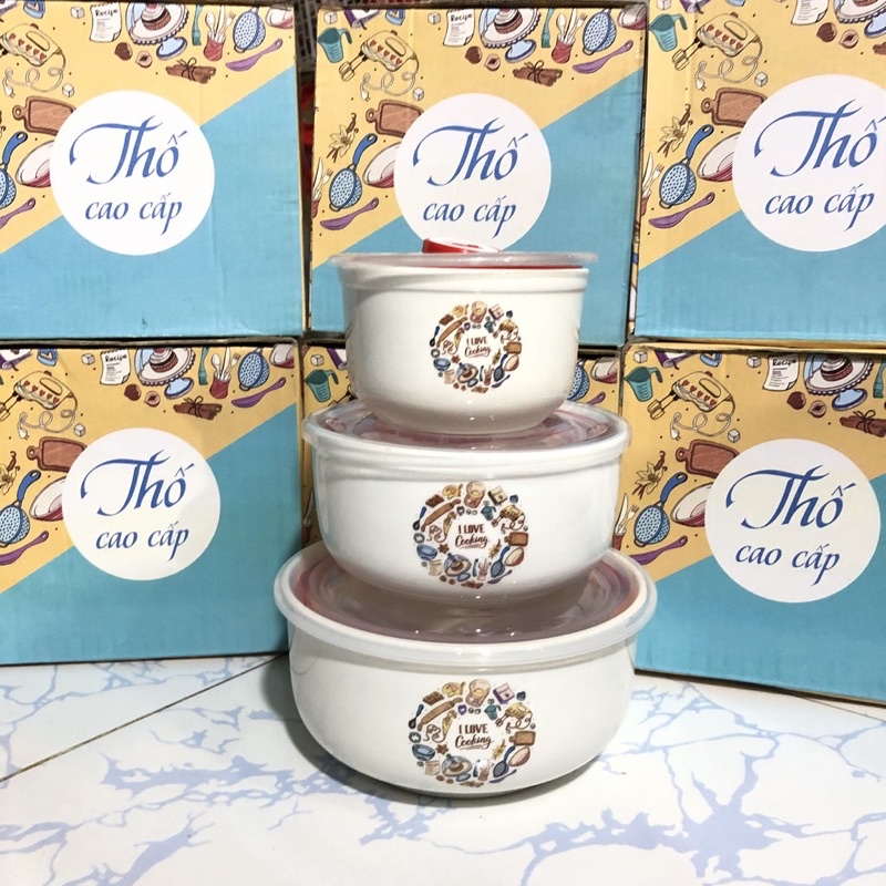 Nhà cửa & Đời sống > Bộ đồ bàn ăn > Tô || Bộ 3 thố sứ nắp nhựa ( mẫu ngẫu nhiên )Còn hàng