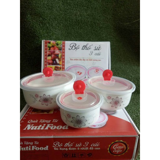 Bộ 3 thố sứ nắp nhựa ( mẫu ngẫu nhiên )