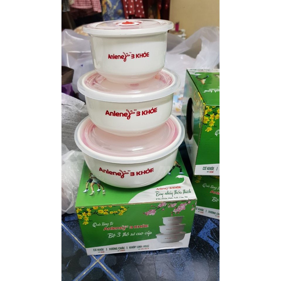 Nhà cửa & Đời sống > Bộ đồ bàn ăn > Tô || Bộ 3 thố sứ Nutifood hút chân không - bộ tô chén sứ Anlene 3 món đựng thức ăn có nắp hút chân khôngCòn hàng