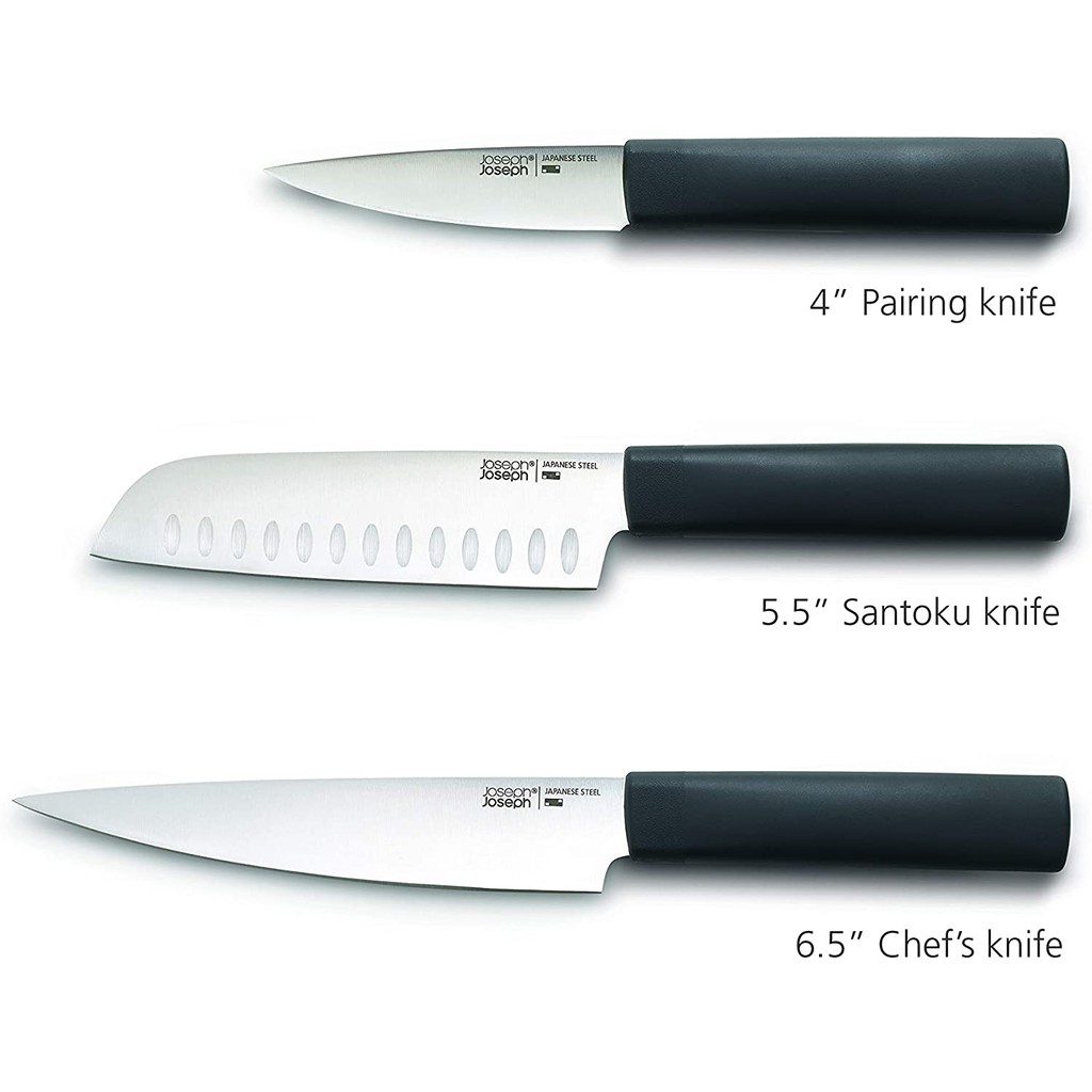 Dao thép không gỉ có tay cầm mềm bao gồm dao đầu bếp 17cm, dao Santoku 14cm và dao gọt 10cm