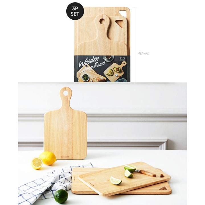 Bộ 3 Thớt Gỗ Cây Cao Su Lock&Lock LWCOO1S3- Thương hiệu Lock&Lock