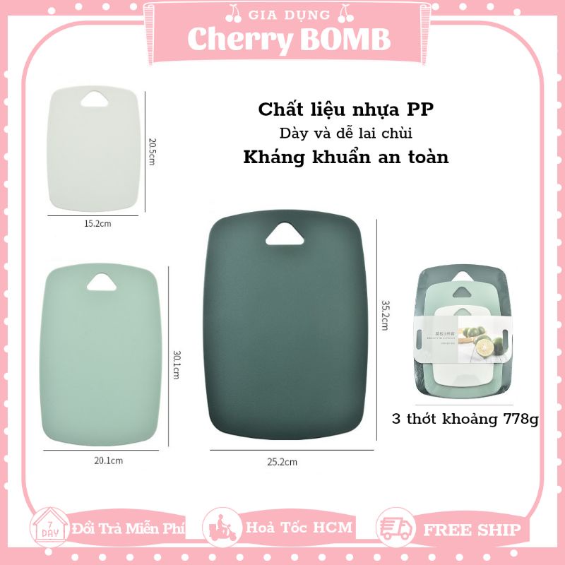 Bộ 3 Thớt Nhựa Kháng Khuẩn Hàng Nội Địa Chất Liệu Nhựa Chống Mốc, Chống Trơn Trượt, Chống Trầy Xước - Siêu Hot