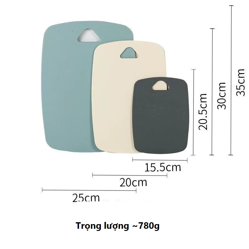 - Kích thước: 1 bộ gồm 3 thớt 3 size: 35x25cm , 30x20cm , 20.5x15.5cm.