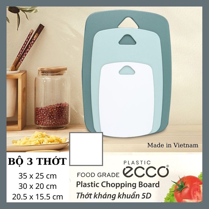 Bộ 3 thớt - Chính hãng Việt Nhật Plastic sản xuất- Tên sản phẩm: Bộ 3 thớt nhựa kháng khuẩn cao cấp tiện lợi, chống xước, trơn trượt, an toàn, sạch sẽ.
