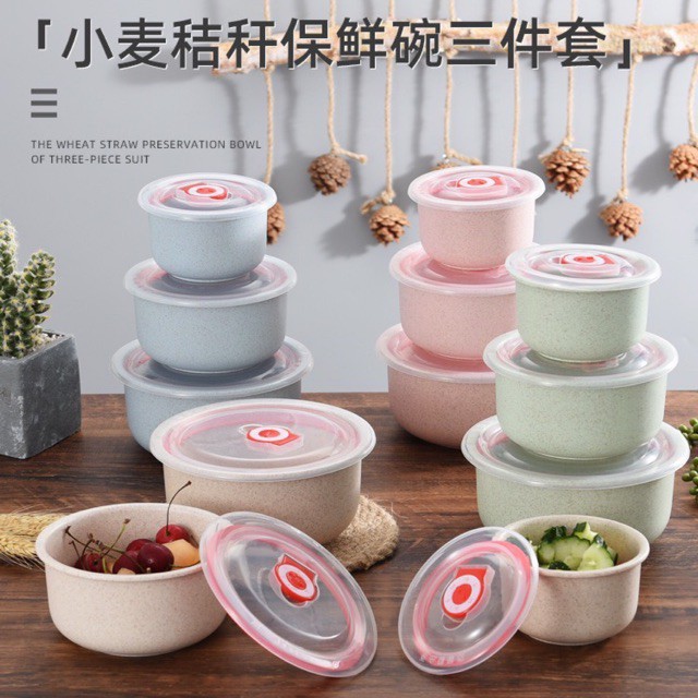 bộ 3 tô có nắp đậy lúa mạch- Bộ 3 Bát Lúa Mạch Có Nắp Đậy Tiện Dụng.